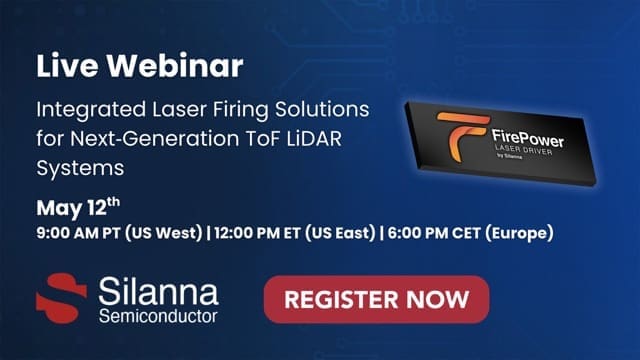 In this webinar, Silanna Semiconductor presents its SL2001 laser firing solution and next‑generation laser array firing architectures designed to address these challenges head‑on. Attendees will learn how integrated laser firing architectures can improve pulse performance, enhance timing accuracy, reduce system power dissipation, and significantly simplify lidar hardware designs.